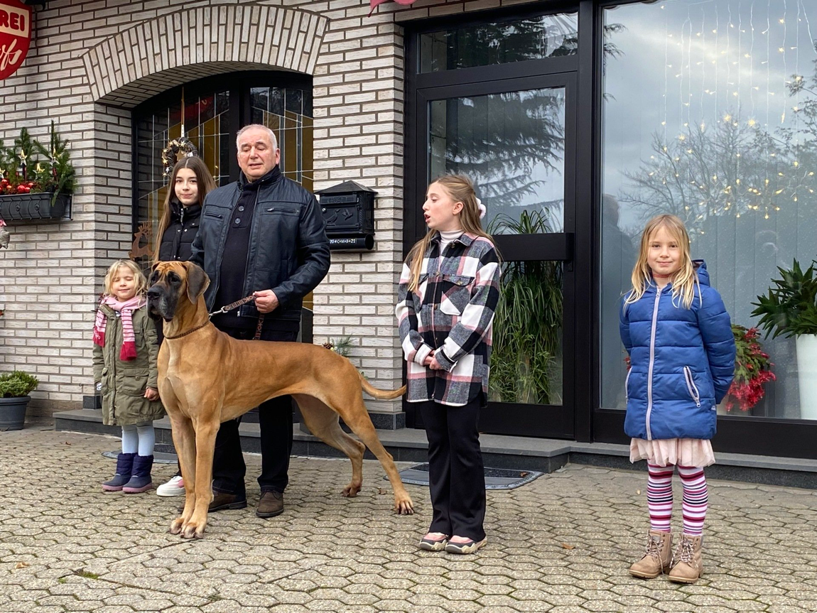 Zusammen mit Sally gratulieren wir allen Geschwistern und bedanken uns bei den Besitzerinnen und Besitzern für den guten Kontakt und die fürsorgliche Pflege unserer Doggen. Viele Grüße, Familie Bischofs. Fotos: privat